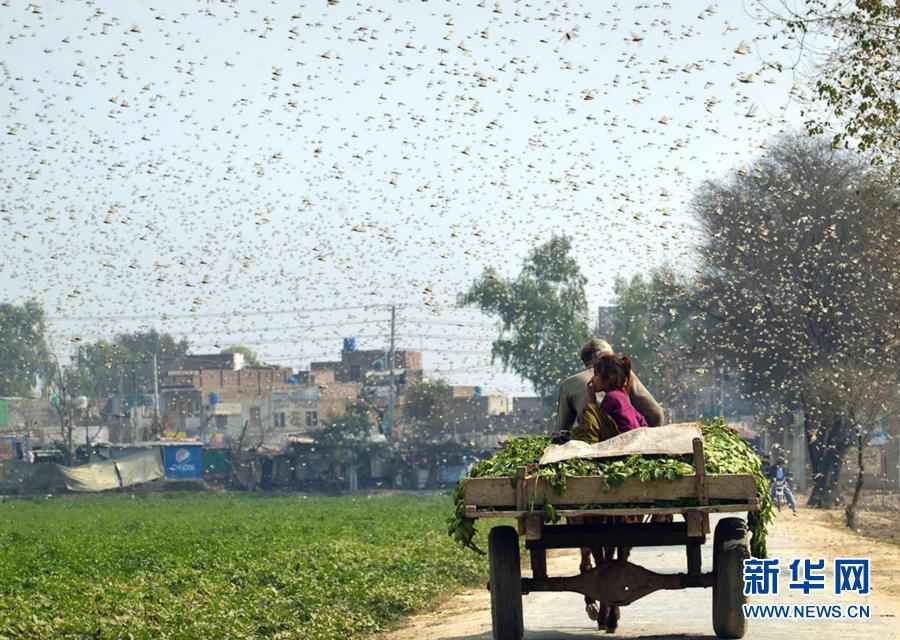 2月15日,在巴基斯坦东部旁遮普省的奥卡拉地区,漫天的蝗虫肆虐(手机照片)。新华社发