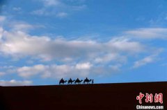 张晓亮 摄图为甘肃省敦煌市鸣沙山月牙泉景区内,游客沐浴着晨光,欣赏大漠风光,仿佛置身画卷当中。张晓亮 摄...