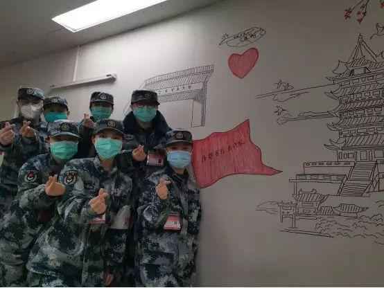 这天,上夜班的刘盼起了个大早,匆匆吃完早饭就来到工作区,拿起马克笔,把自己的想法一笔一笔地绘在了墙上。空军军医大学唐都医院,这里是培养她的地方;国产运-20大型运输机“胖妞”,是她作为人民空军的骄傲;黄鹤楼、樱花,代表着医护人员拼尽全力守护的武汉。刘盼一笔一划用心创作,最后在中间画上了大大的爱心把它们连在了一起,“这颗爱心代表了我对他们满满的爱。”刘盼深情地说道。